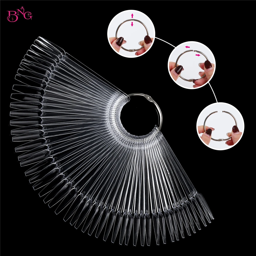 "50pcs False Nails Clear Acrylic Nail Tips Coffin Nail Display Stand Fan Wheel Practice Board Tip Stick for UV Gel Polish Display" * Buy Now Just For 4$