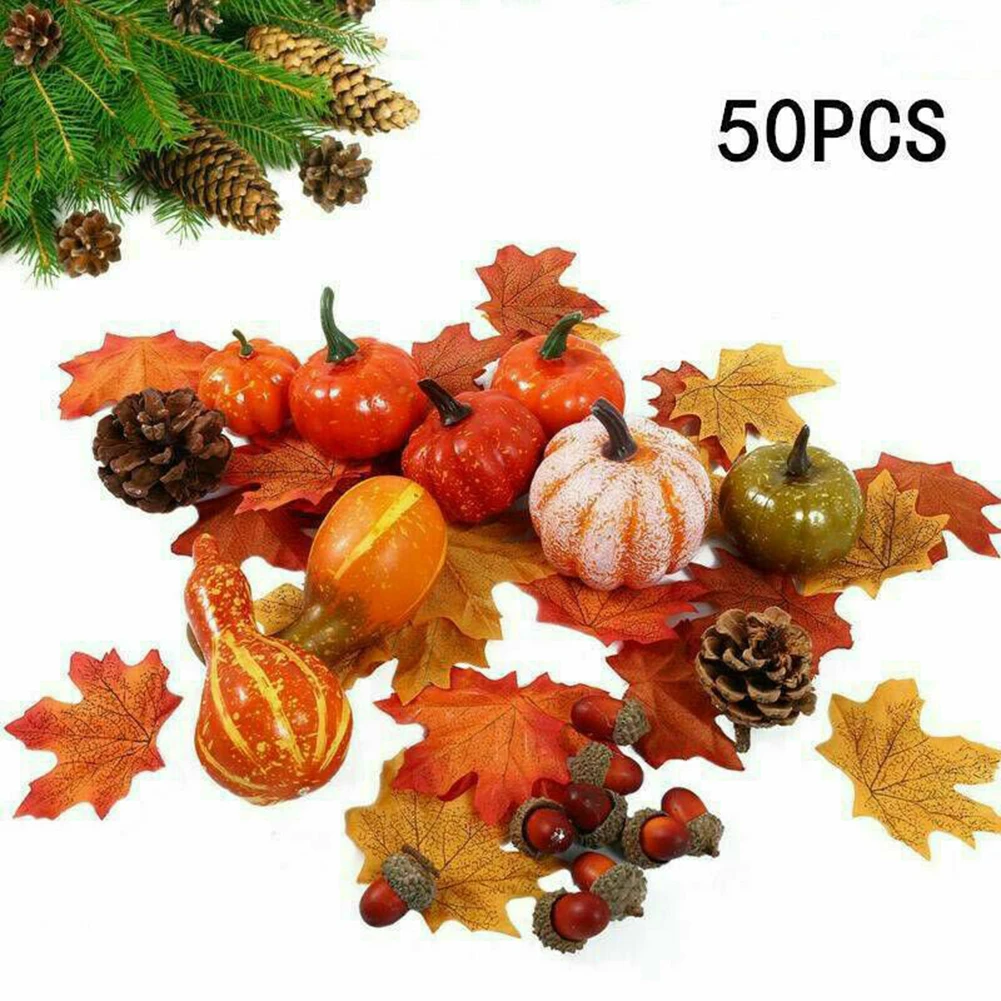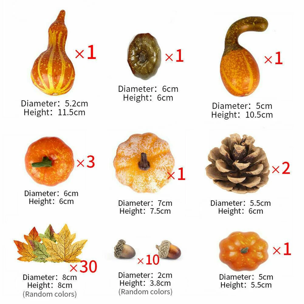 «50pcs Harvest Decor Autumn Pumpkin Maple Leaf Pine Cones Mini Set Artificial Simulation Thanksgiving Fall Foam Fake Pumpkins» по лучшей цене на рынке! Всего за 8$ (760рублей)