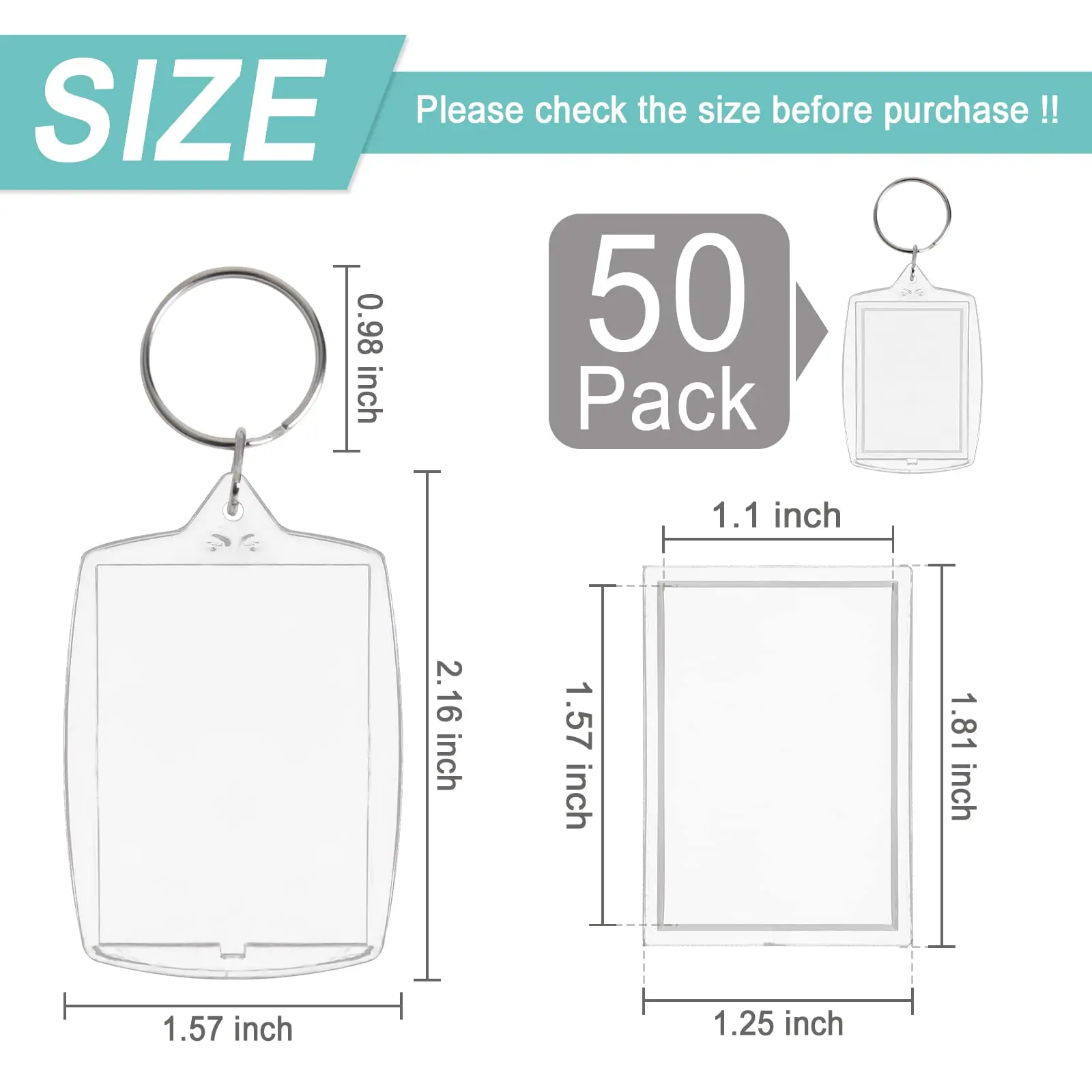 50pcs Rectangle Acrylic Photo Frame Keychain Clear Blank Personalized Picture Insert Keychain Acrylic Picture Snap in Keychains - Купить с бесплатной доставкой
