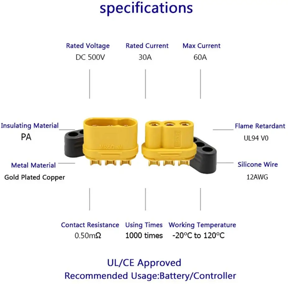 «5/10pair Amass MR60 Plug Connector Female Male with Sheath 3.5mm Bullet Power Plugs for RC Model Motor ESC Connection» по лучшей цене на рынке! Всего за 6$ (570рублей)