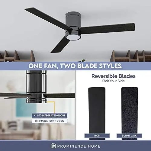fppiULLZhlHere you can buy 52 Inch Flush Mount Contemporary Indoor LED Ceiling Fan with Light, Remote Control, 3 Modern Dual Finish Blades, Reversible Moto with free delivery to your post office.