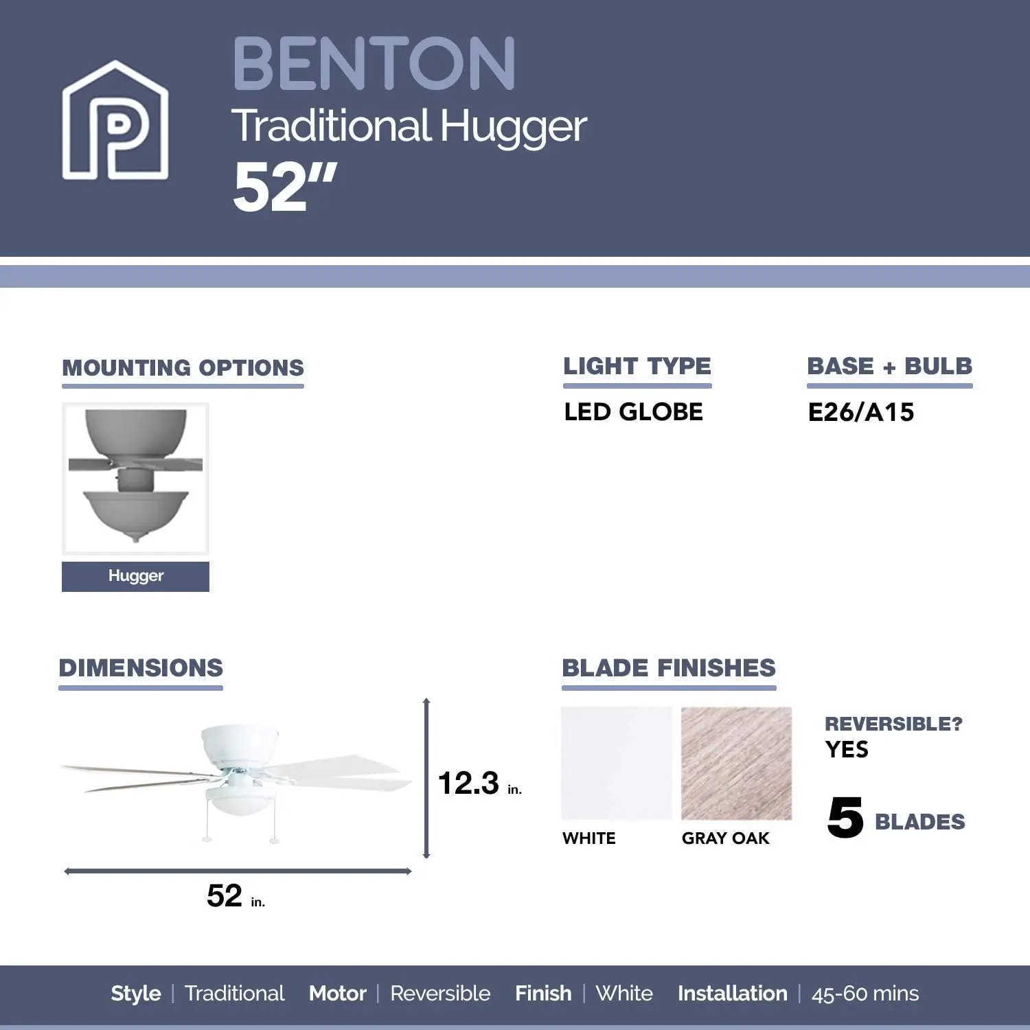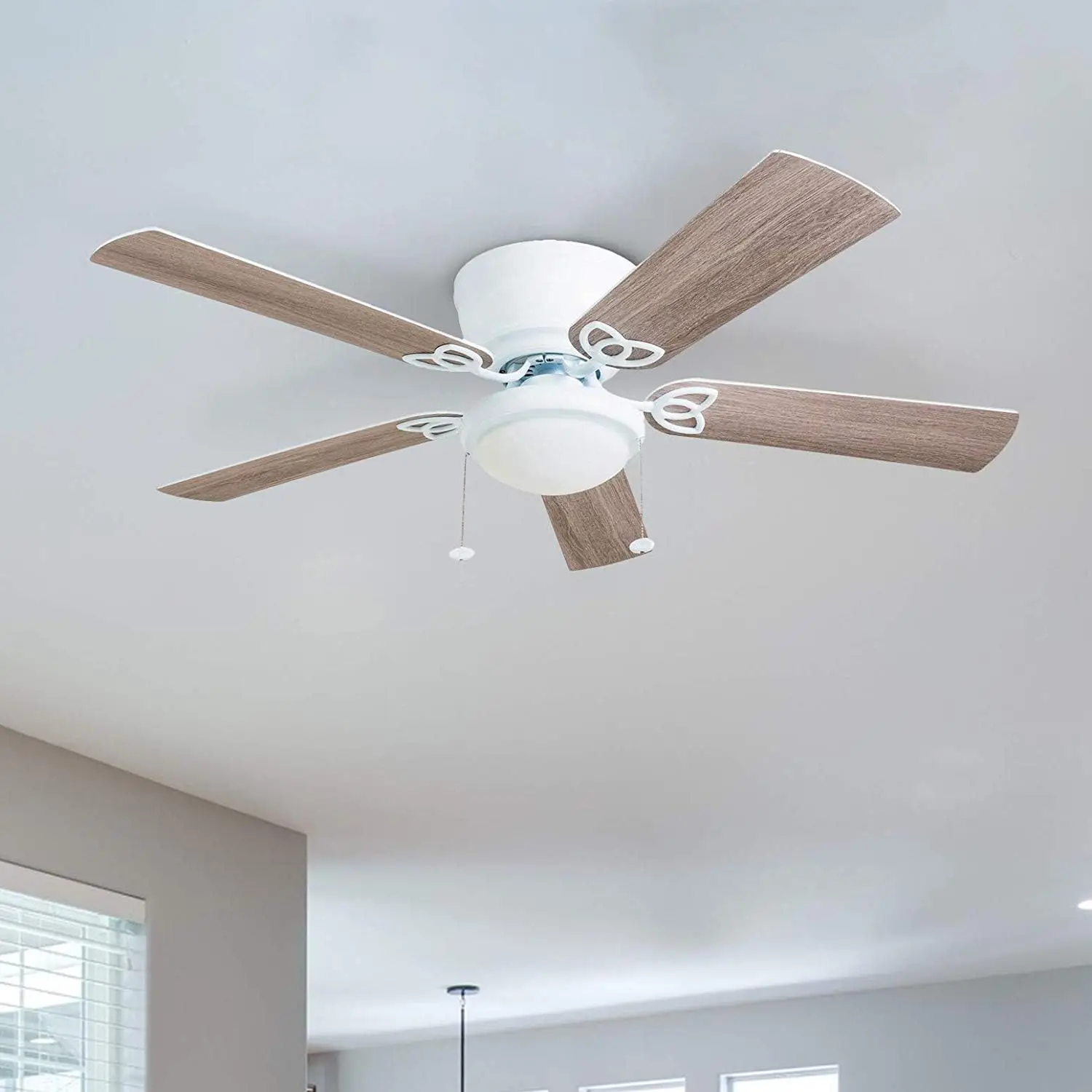52 Inch Traditional Flush Mount Indoor LED Ceiling Fan with Light, Pull Chains, Dual Finish Blades, Reversible Motor - 50852-01 - Купить с бесплатной доставкой