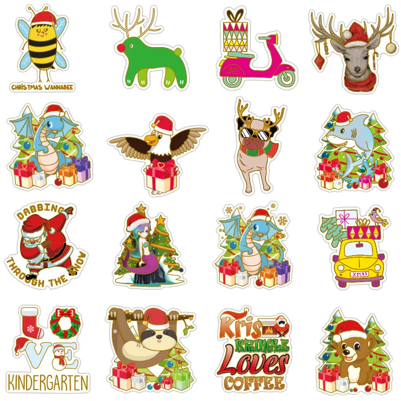 "52 Pcs Gold Hot Large Christmas Graffiti Stickers Computer Notebook Suitcase Stickers Trunk Stickers" * Buy Now Just For 3$