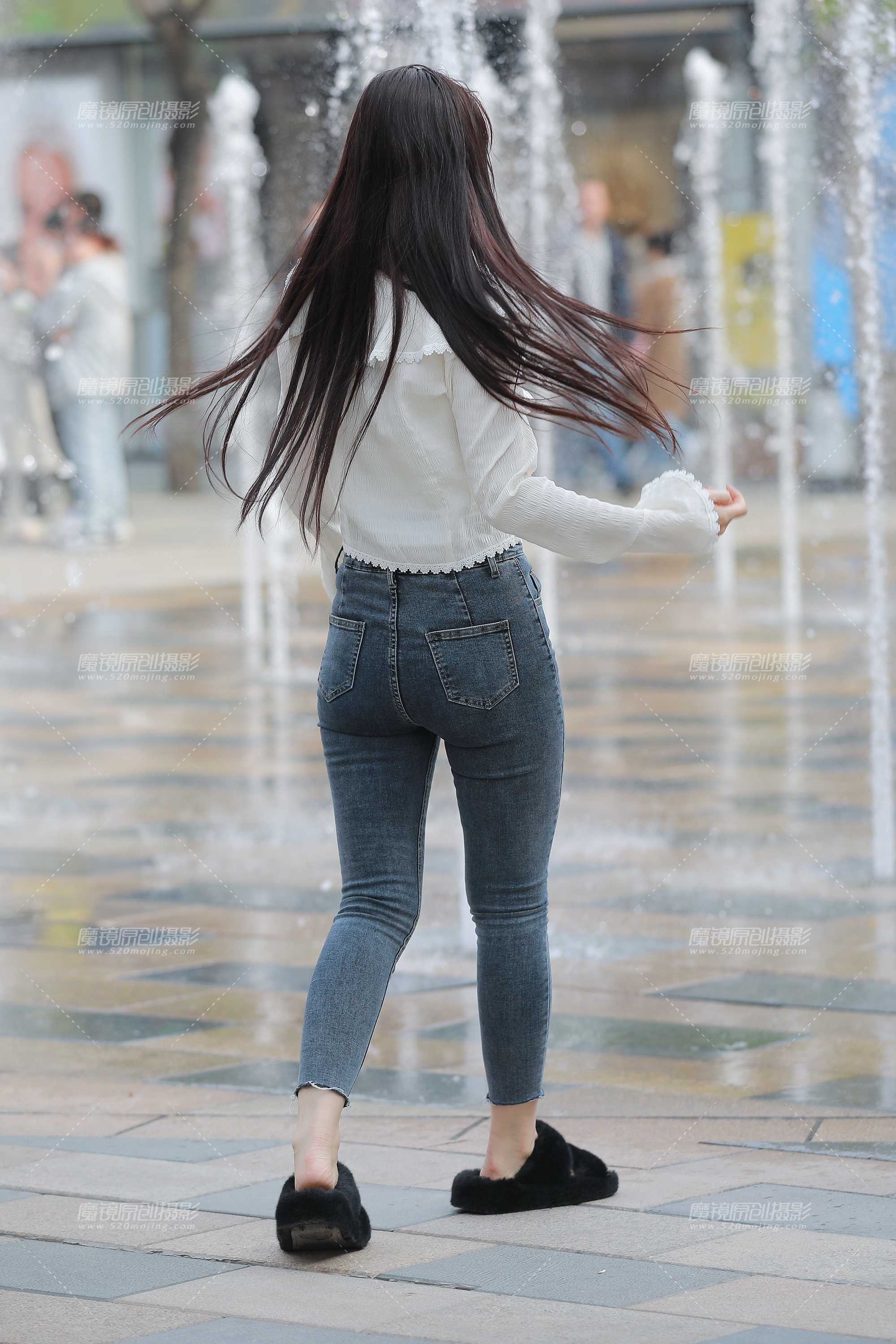 [47474]【玻璃街拍】紧身牛仔裤辣妈