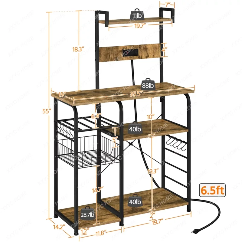 cBttHWjyHere you can buy 55″Kitchen Baker's Rack with Power Outlet 10 S-Hooks, 4-Tier, Rustic Brown with free delivery to your post office.
