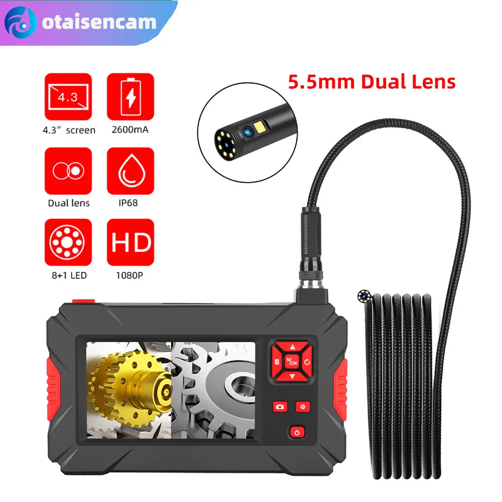 NLBurtjVHere you can buy 5.5mm HD Dual Lens Mirror Pipe Camera 4.3 Inch Full Color IPS Screen Visual Detector Peeping Endoscope IP68 Wateproof with free delivery to your post office.