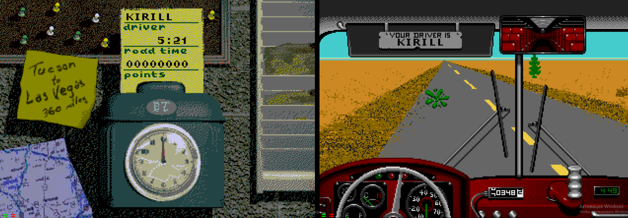 Мы честно сели в подвале бара в разгар рабочей ночи, мы честно пытались доехать до Лас-Вегаса, мы изучили каждый элемент кабины, каждую линию, каждое движение ёлочки на стекле, развлекали себя наблюдением за перелистыванием километража (миллиметрожа?). Через часа три мы поймали дзен. В этой игре и вправду на 5 часу врезается муха в лобовое стекло, и это становится событием! Мы посчитали, что можно не рулить в течении 20 секунд, это то время за которое автобус сносит от левого края дороги до правого.