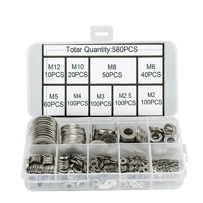 «580 Pcs Stainless Steel Flat Screws Washer Gasket Set M2-M12 Assortment Set with Box for Home Automobile Shop Home Improvement» по лучшей цене на рынке! Всего за 11$ (1045рублей)