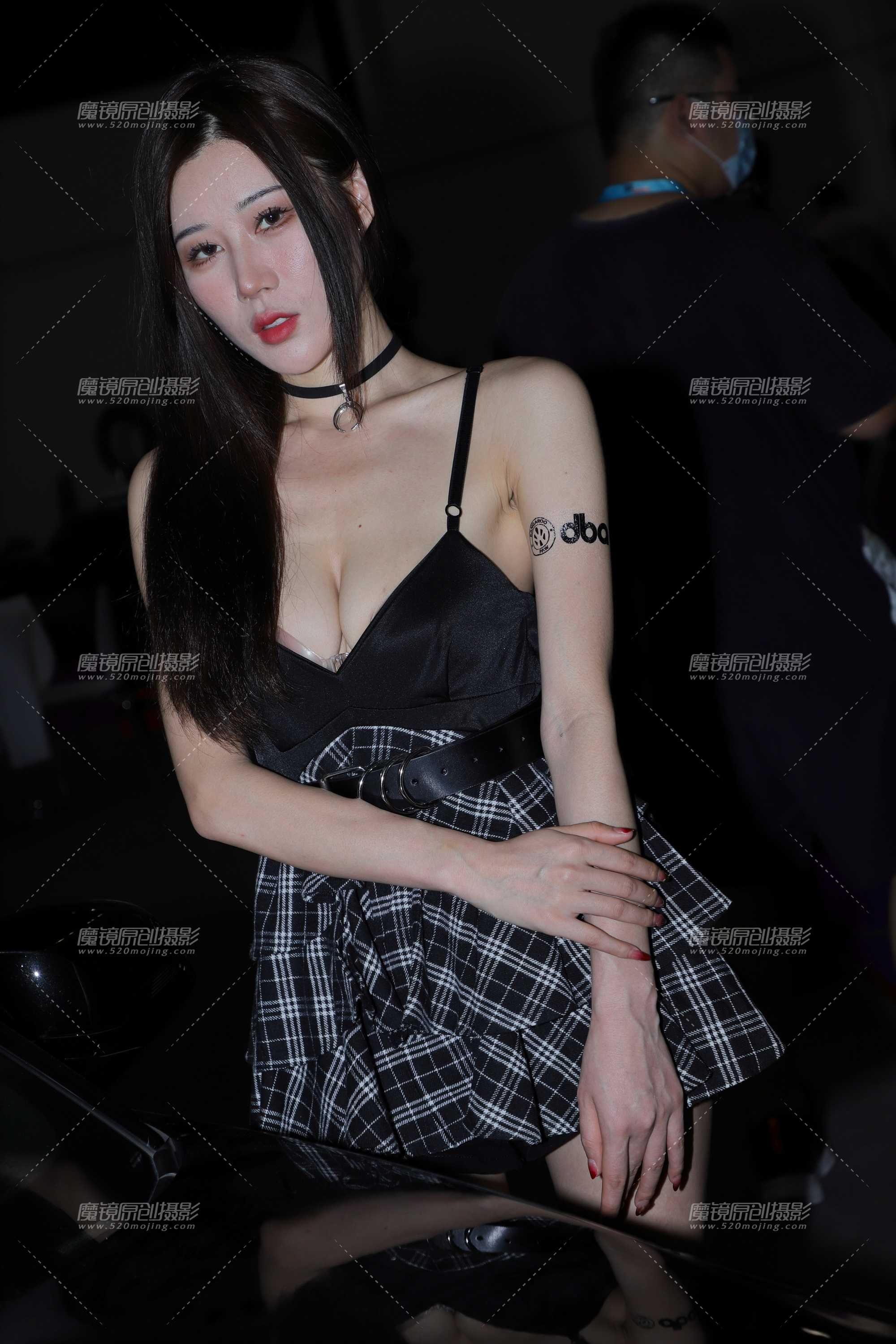 [45163]黑色吊带抹胸 格子短裙