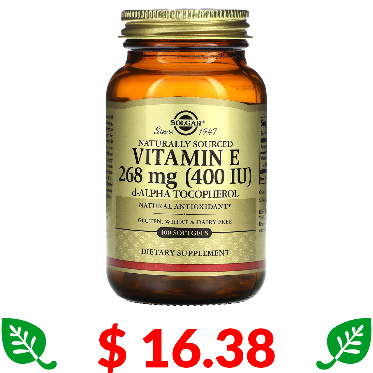 $ 16.38 Solgar, вітамін E природного походження, 268 мг (400 МО), 100 капсул