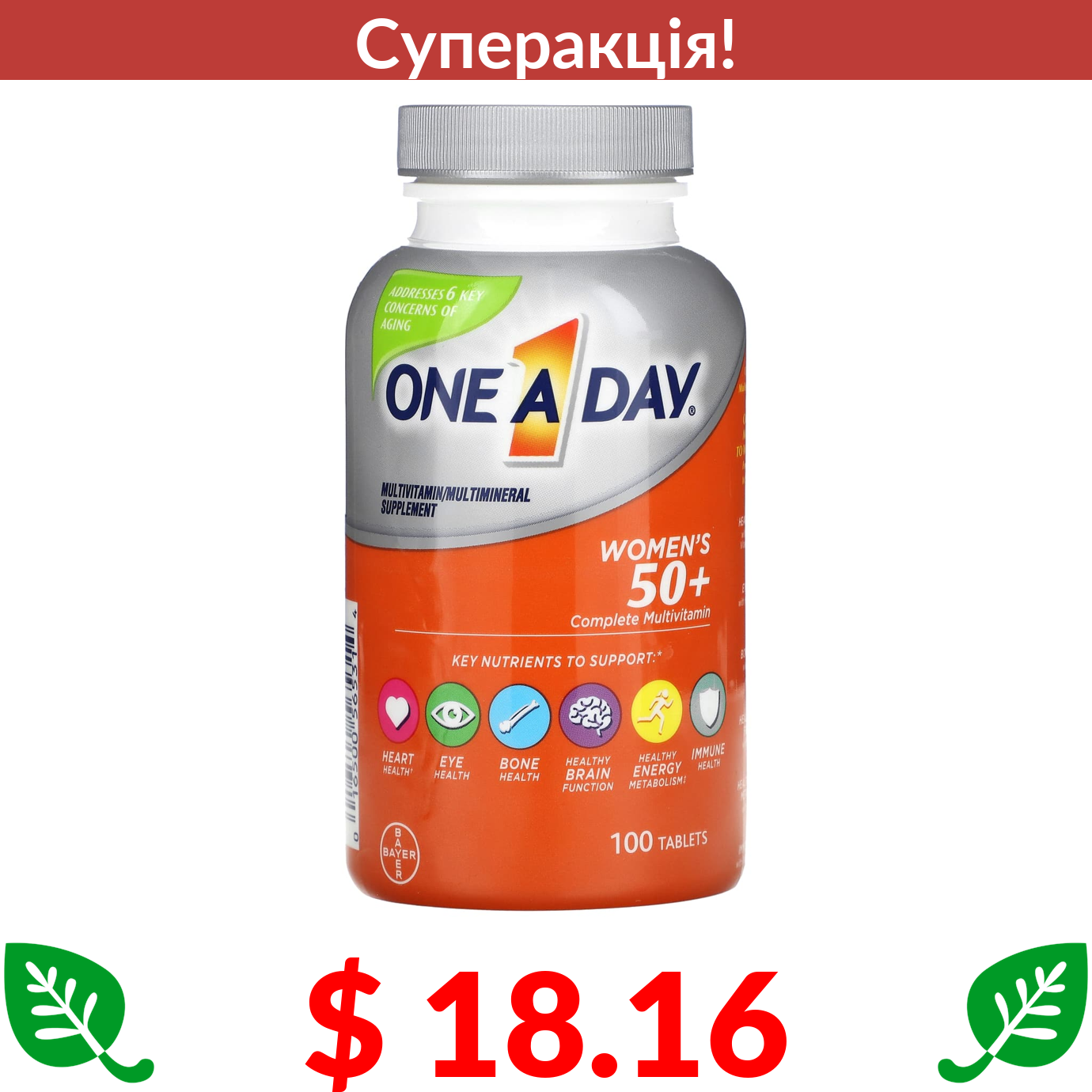 $ 18.16 One-A-Day, комплексні мультивітаміни для жінок від 50 років, 100 таблеток
