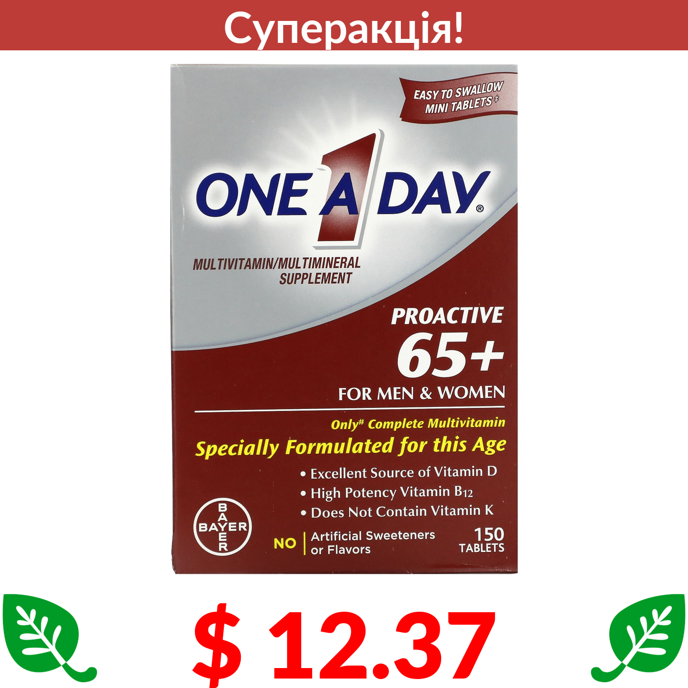 $ 12.37 One-A-Day, Proactive 65+, Multivitamin/Multimineral Supplement, For Men & Women, 150 Tablets