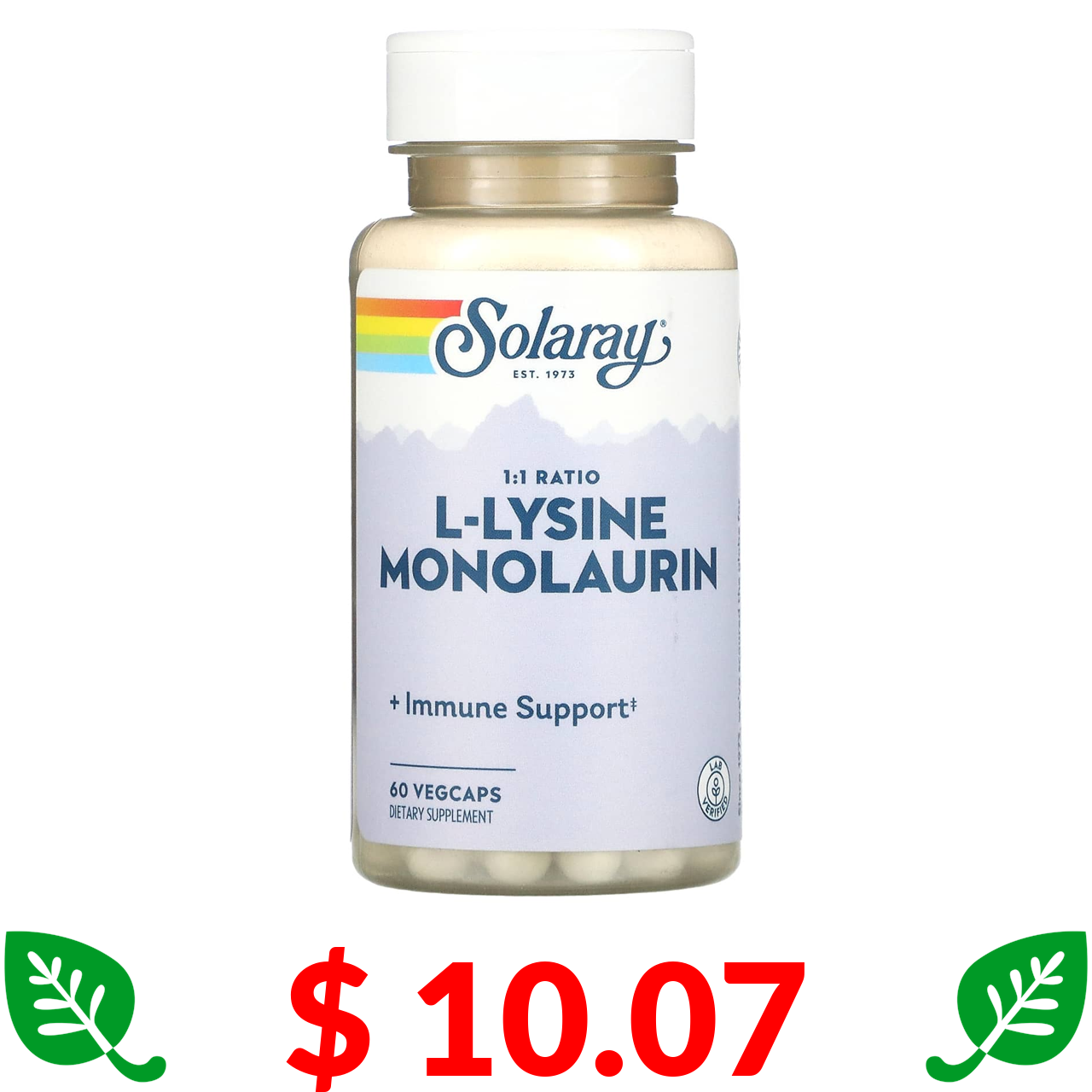 $ 10.07 Solaray, L-лізин і монолаурин, у співвідношенні 1:1, 60 капсул VegCaps