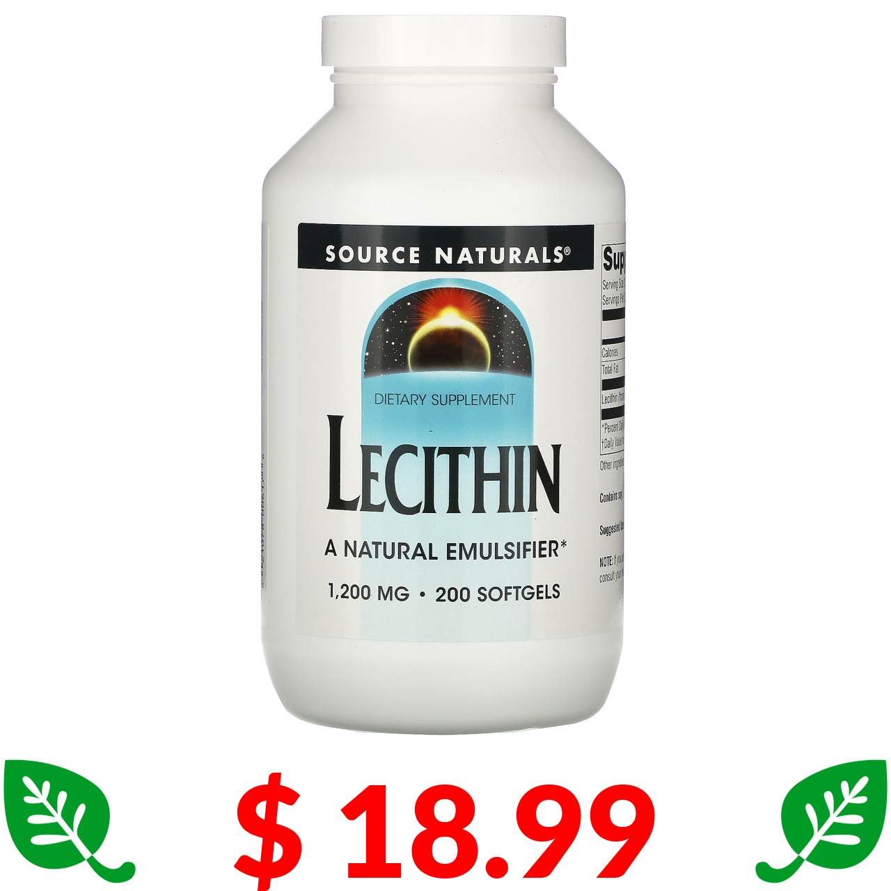 $ 18.99 Source Naturals, лецитин, 1200 мг, 200 капсул