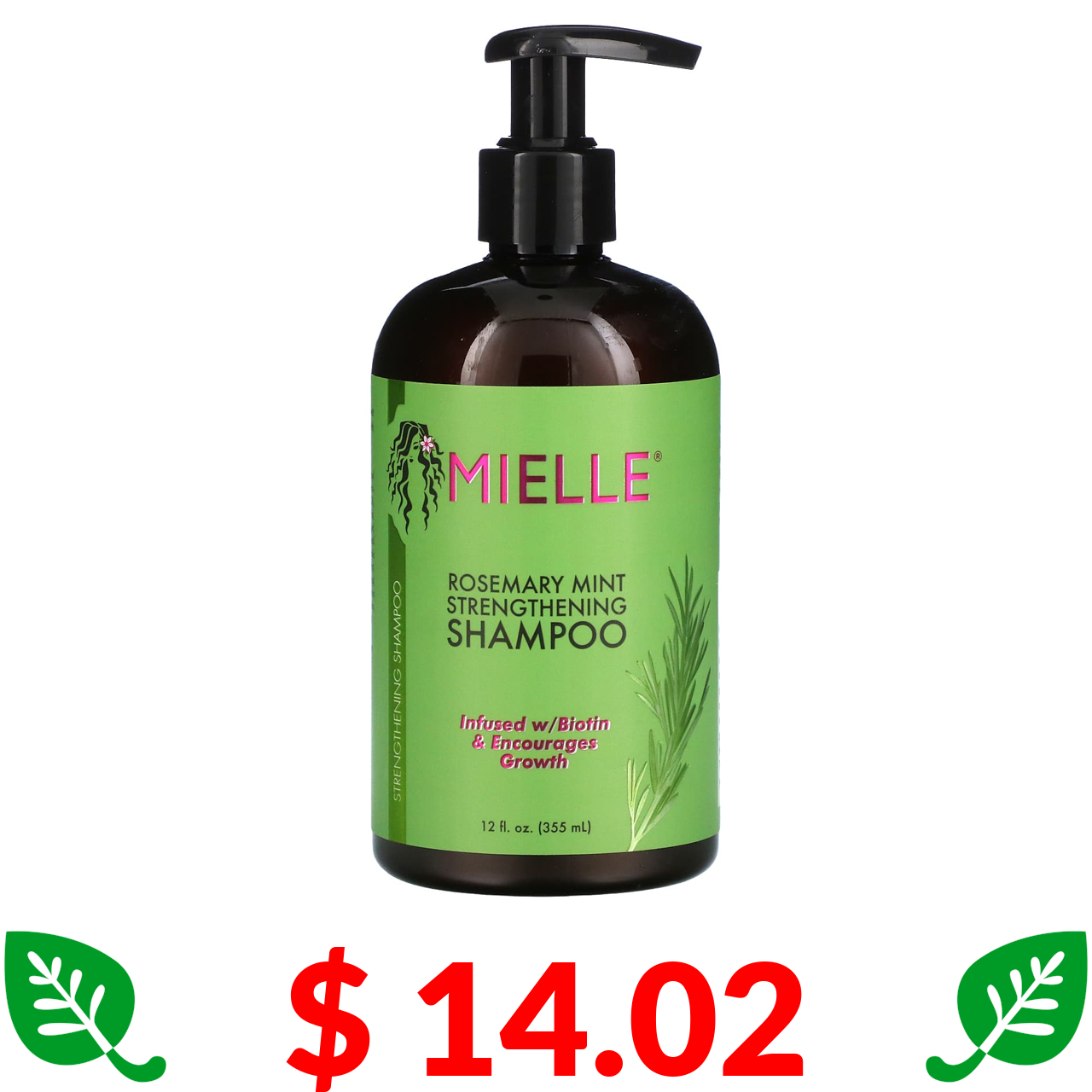 $ 14.02 Mielle, Зміцнюючий шампунь, м'ята з розмарином, 12 рідких унцій (355 мл)
