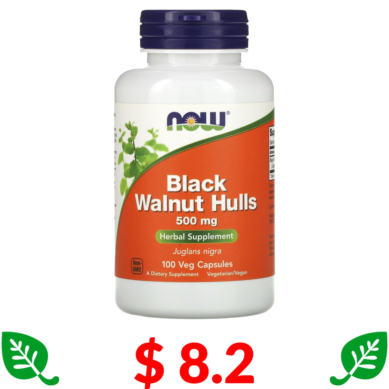 $ 8.2 Now Foods, шкарлупа чорного горіха, 500 мг, 100 рослинних капсул