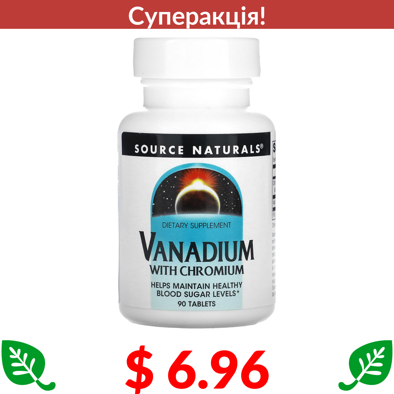 $ 6.96 Source Naturals, ванадій і хром, 90 таблеток