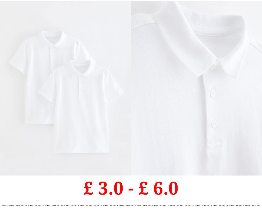 £ 3.0 - £ 6.0 White Short Sleeve School Polo Shirts 2 Pack