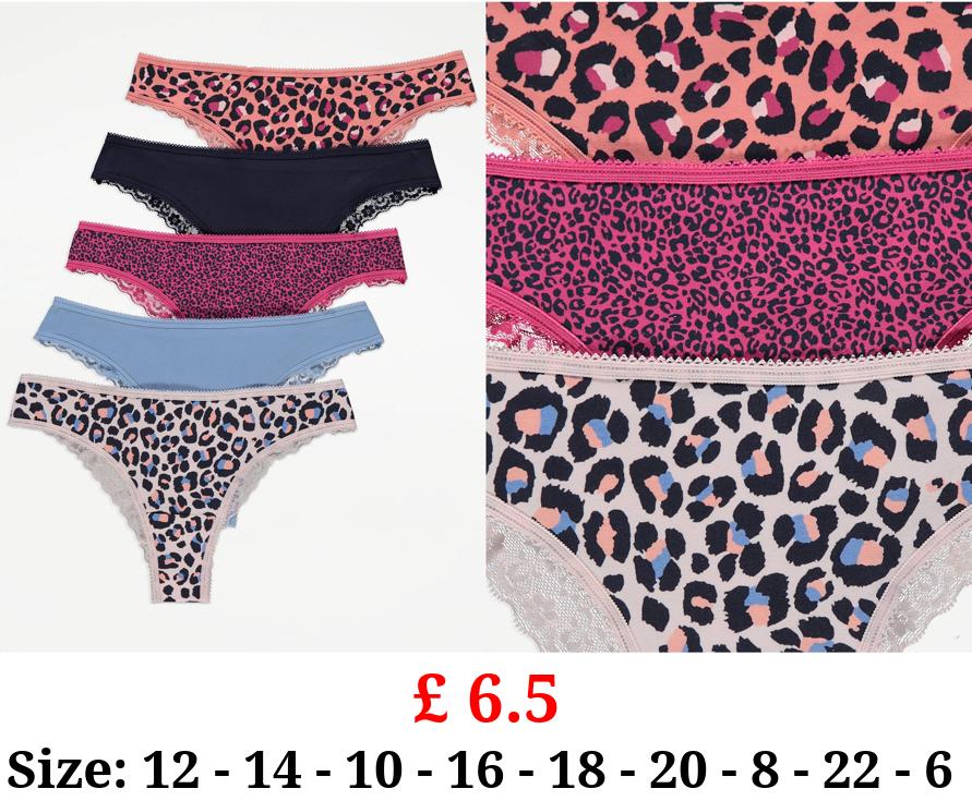 £ 6.5 Bright Leopard Brazilian Knickers 5 Pack