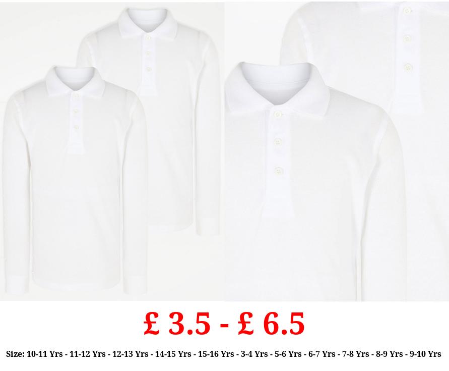 £ 3.5 - £ 6.5 White Regular Fit Long Sleeve School Polo Shirts 2 Pack