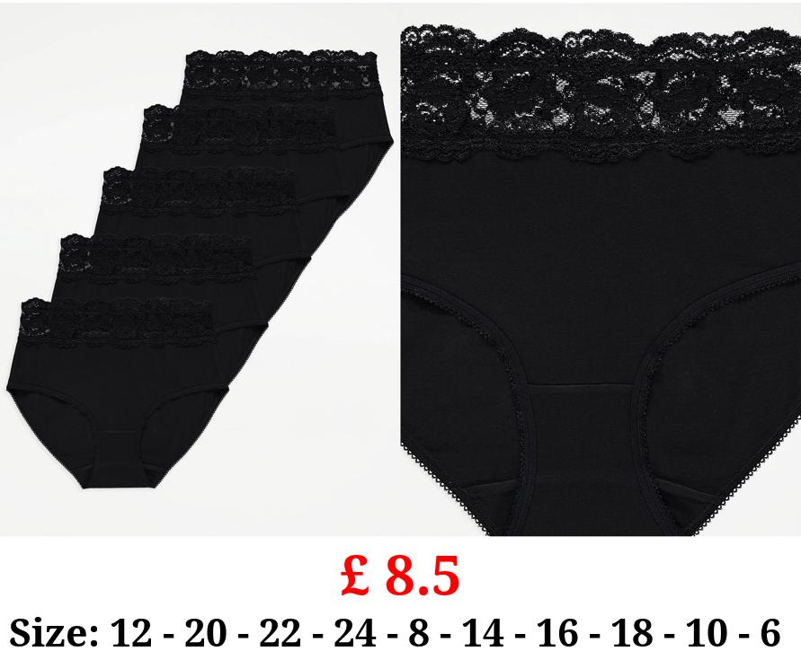 £ 8.5 Black Lace Top Full Brief Knickers 5 Pack