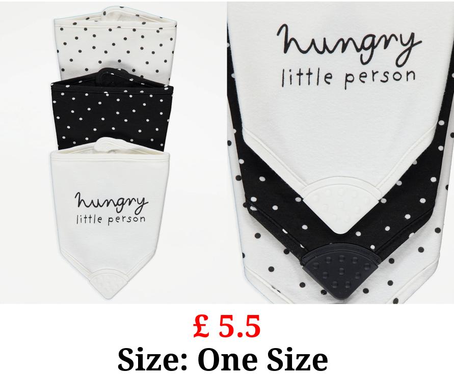 £ 5.5 White Hungry Little Person Teether Bibs 3 Pack