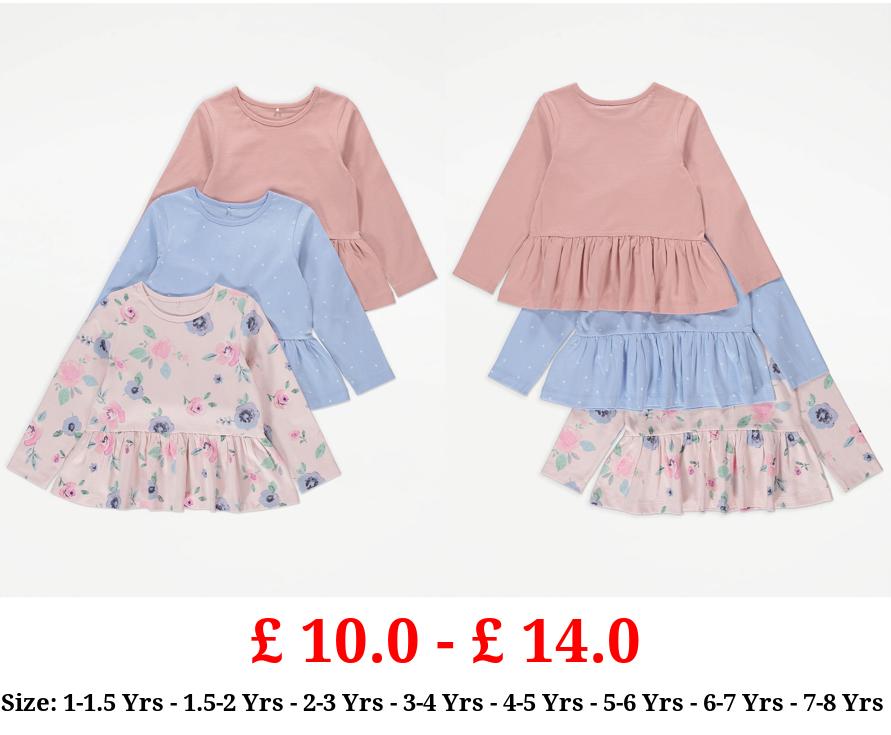 £ 10.0 - £ 14.0 Floral Rose Long Sleeve Peplum Tops 3 Pack