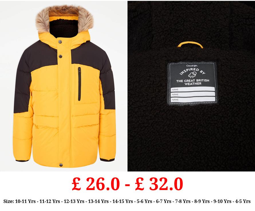 £ 26.0 - £ 32.0 Yellow Faux Fur Trim Padded Coat