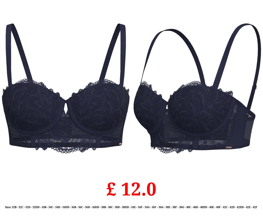 £ 12.0 Entice Navy Floral Lace Balcony Bra