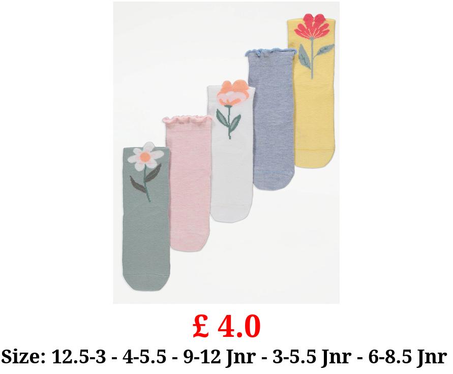 £ 4.0 Floral Cotton Rich Ankle Socks 5 Pack