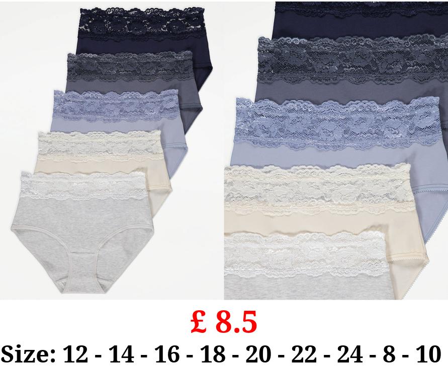 £ 8.5 Blue Lace Top Full Briefs 5 Pack