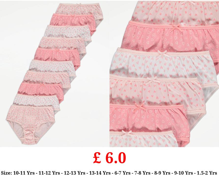 £ 6.0 Pink Heart Print Briefs 10 Pack