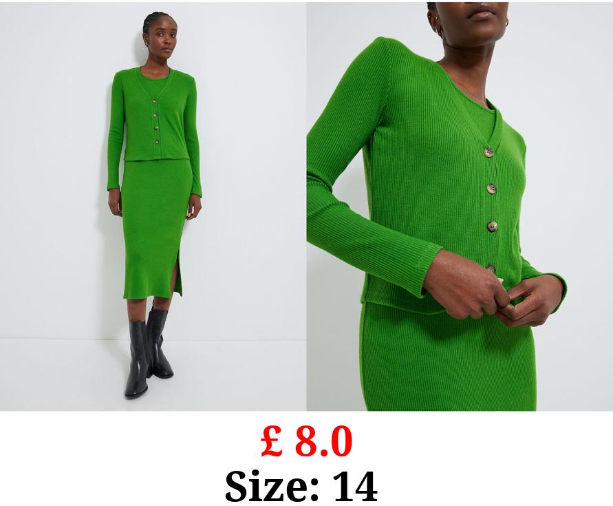 £ 8.0 Green Ribbed Button Up Cardigan and Midi Dress Co-ord