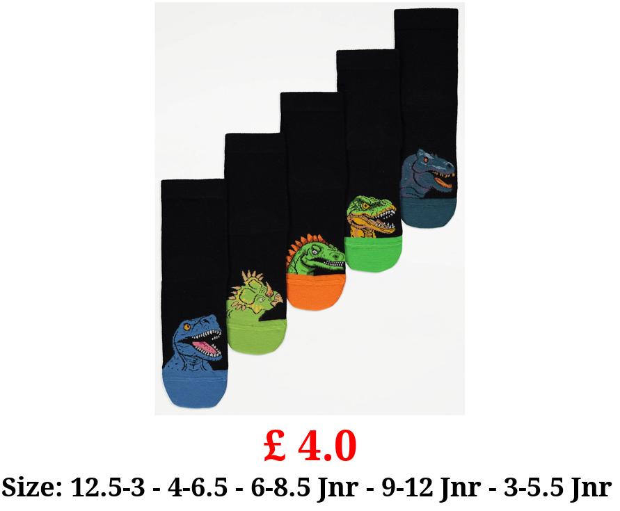 £ 4.0 Black Dinosaur Cotton Rich Ankle Socks 5 Pack
