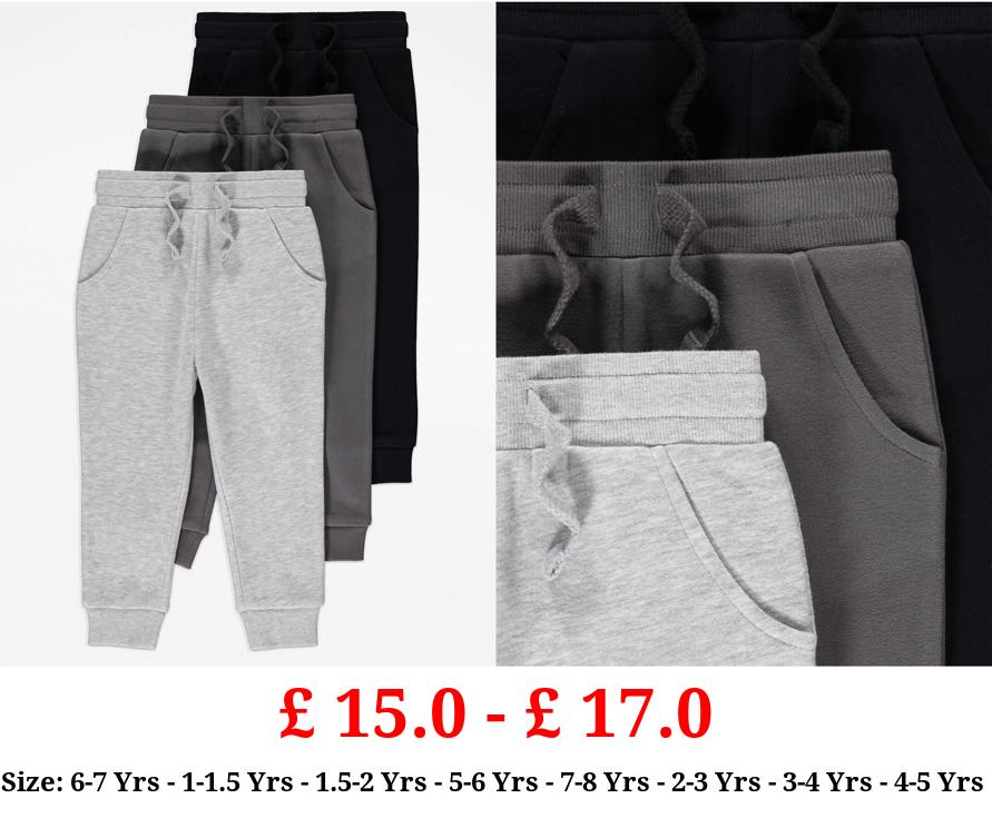 £ 15.0 - £ 17.0 Grey Cuffed Plain Joggers 3 Pack