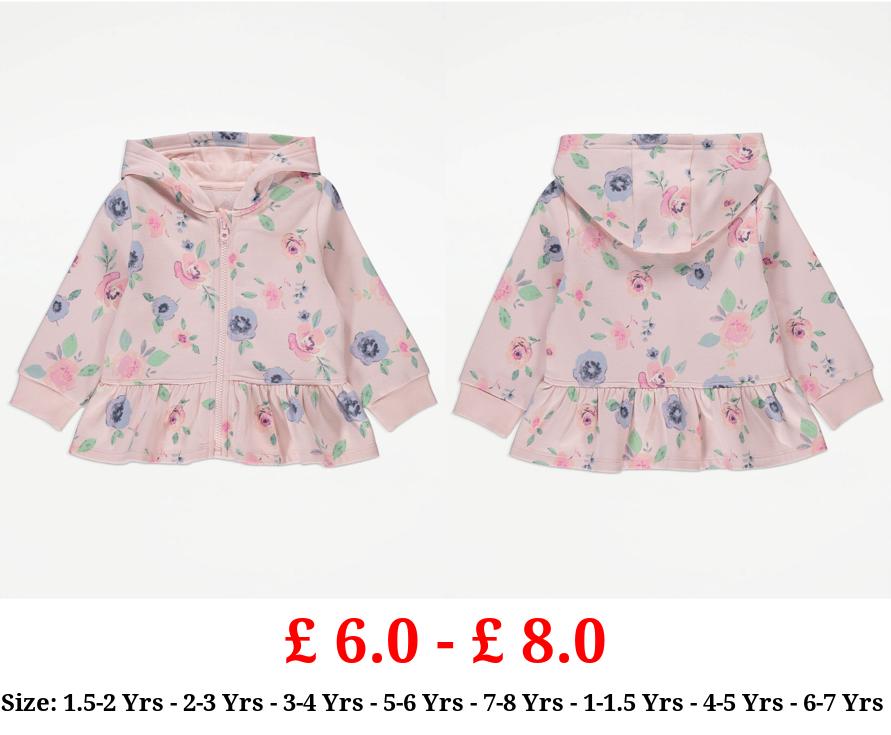 £ 6.0 - £ 8.0 Pink Floral Rose Zip Up Peplum Hoodie