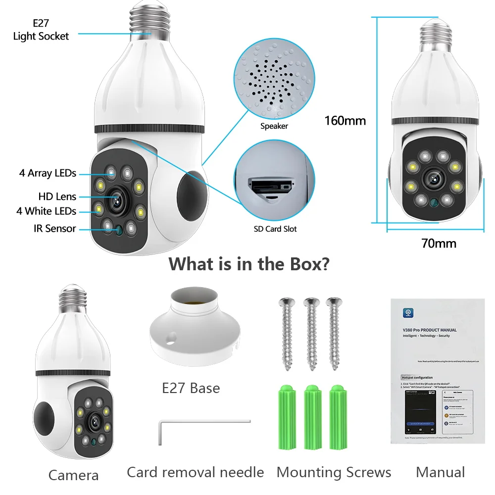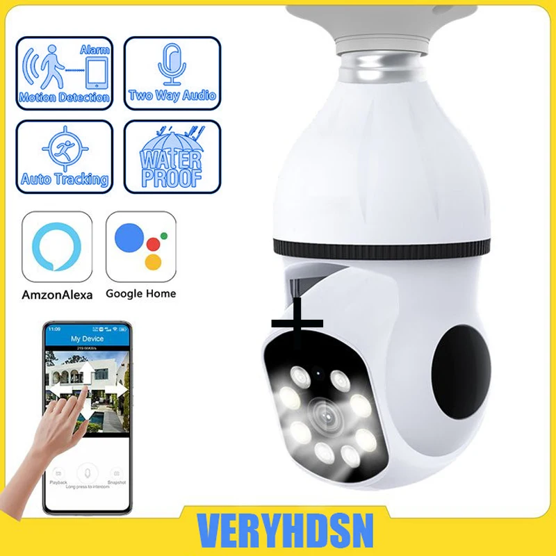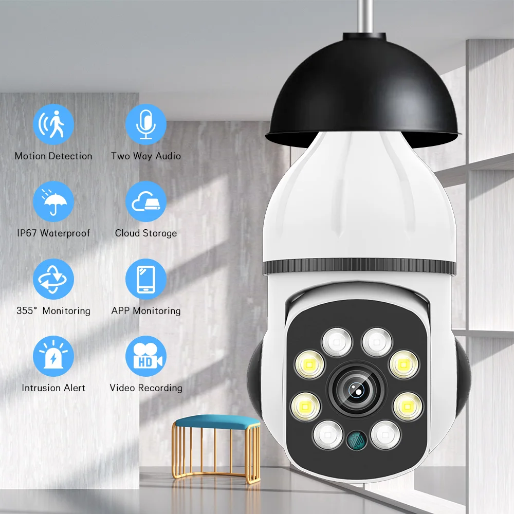 uqxfIExOcHere you can buy 5G Wifi Light Bulb Surveillance Camera 360 Rotate Color Night Wireless Camera 4MP Security Camera E27 Interface with free delivery to your post office.