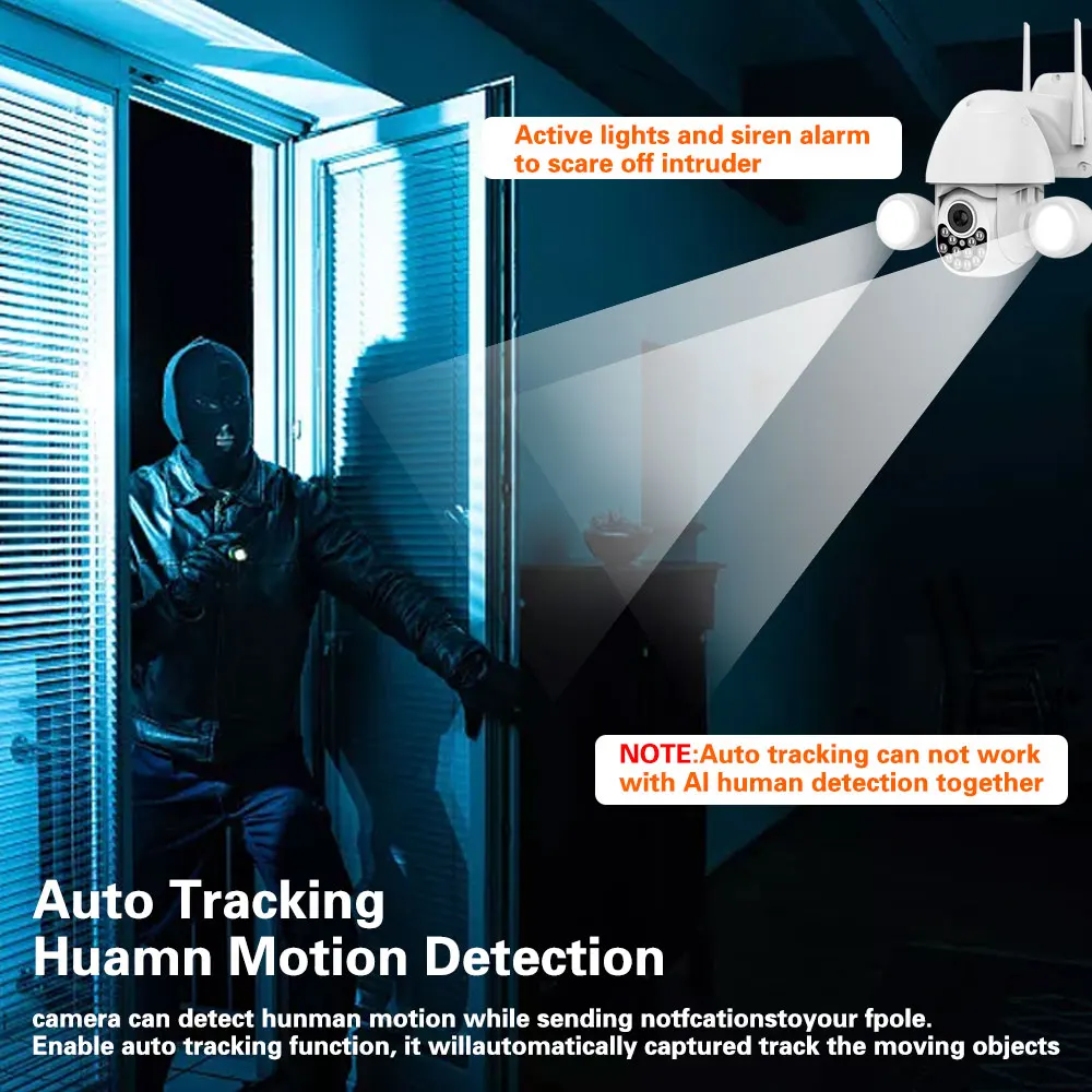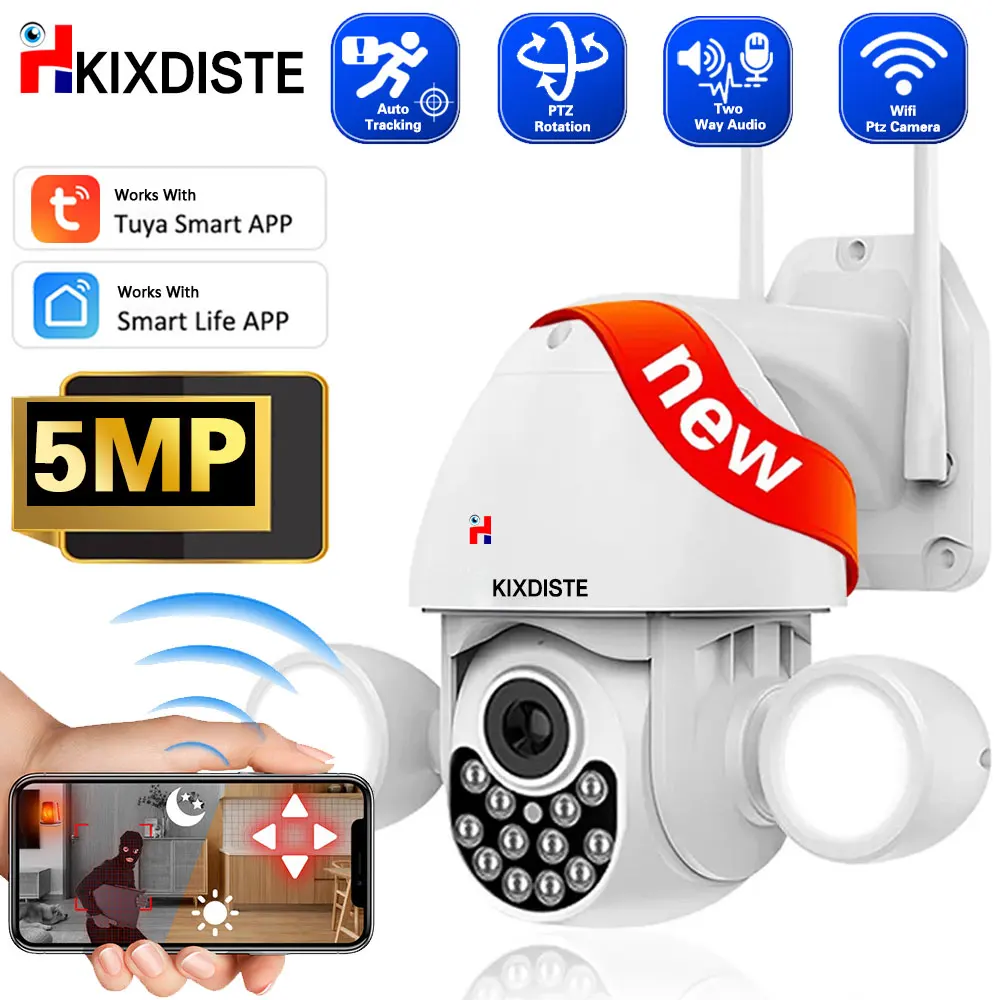 QDTqflFYyuHere you can buy 5MP AI Auto Tracking Wifi Floodlight Outdoor Tuya Smart Life PTZ Wireless Camera Color NightVison CCTV Video Surveillance Camera with free delivery to your post office.