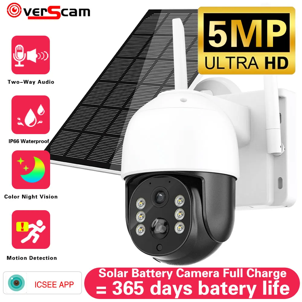 5MP Battery Camera Rechargeable Solar Panel PIR Humanoid Detection Outdoor PTZ Wireless Camera Full Color Night Vision CCTV Cam - Купить с бесплатной доставкой