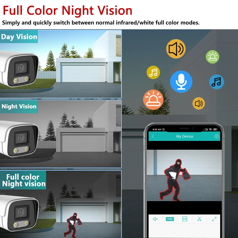 5MP Color Dual Light WiFi Camera Outdoor Home Security Camera Wireless Surveillance Bullet Two-Way Audio Video HD Camara XMEye - Купить с бесплатной доставкой