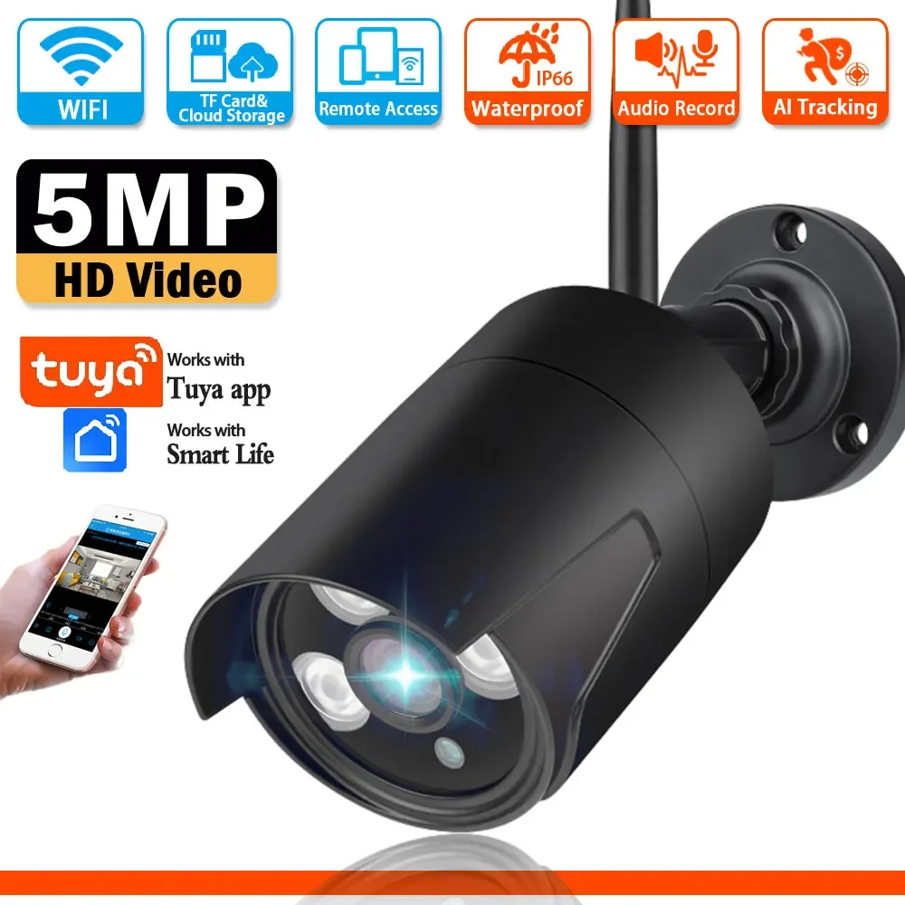 nOKAEERzHere you can buy 5MP HD WIFI Security Bullet CCTV Camera Remote Viewing Human Detection Outdoor Metal IP66 Waterproof Smart Surveillance Camera with free delivery to your post office.