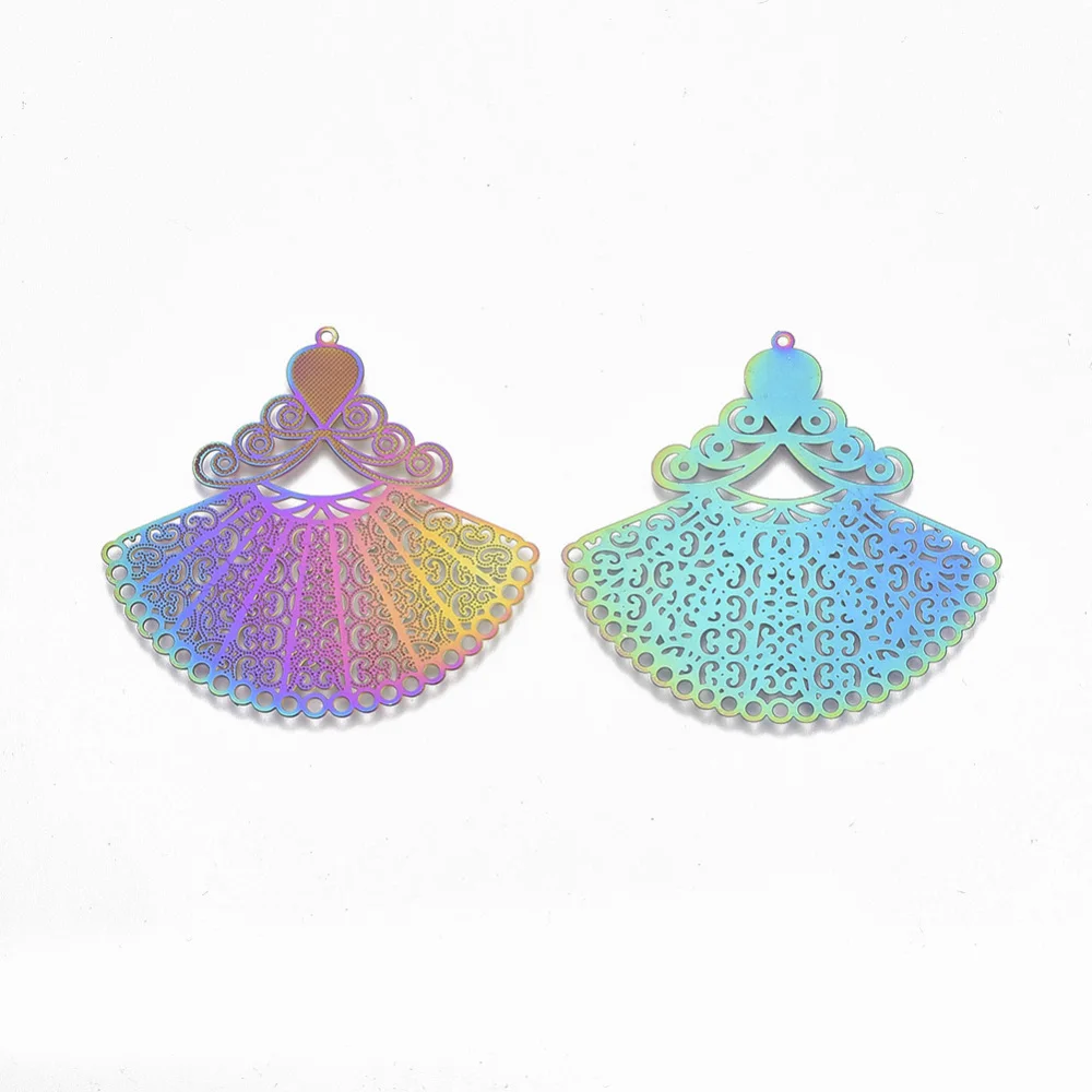 «5PC Ion Plating(IP) 201 Stainless Steel Chandelier Components Links Etched Metal Embellishments Fan Shape Rainbow Color» по лучшей цене на рынке! Всего за 7$ (665рублей)