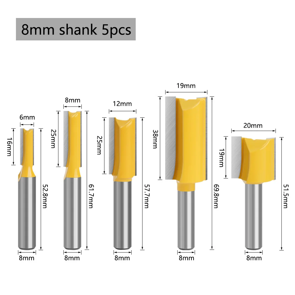 5PCS 8MM Shank Milling Cutter Wood Carving Straight Woodworking Router Bit Set Carpenter Milling 6/8/12/19/20mm Cutting Diameter - Купить с бесплатной доставкой