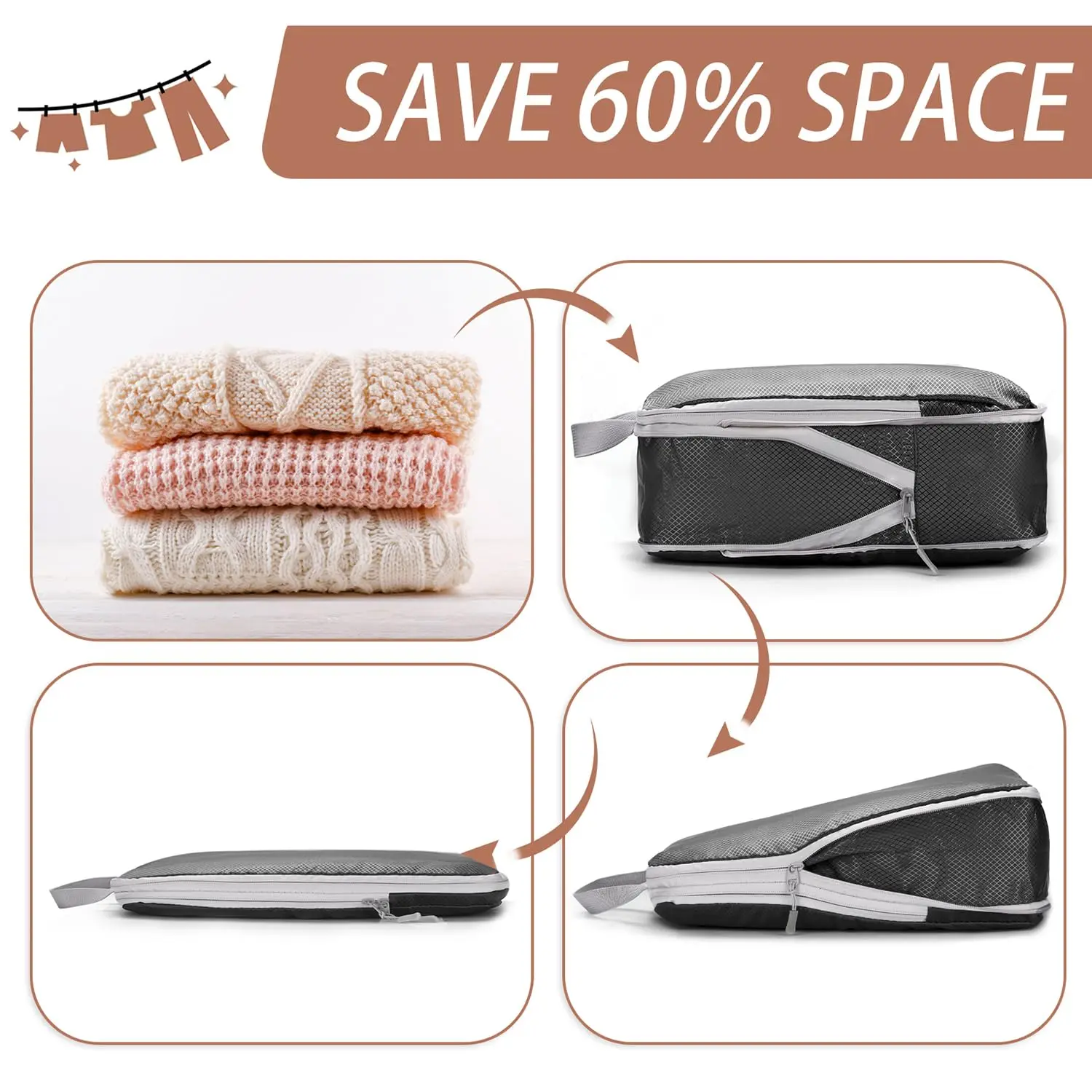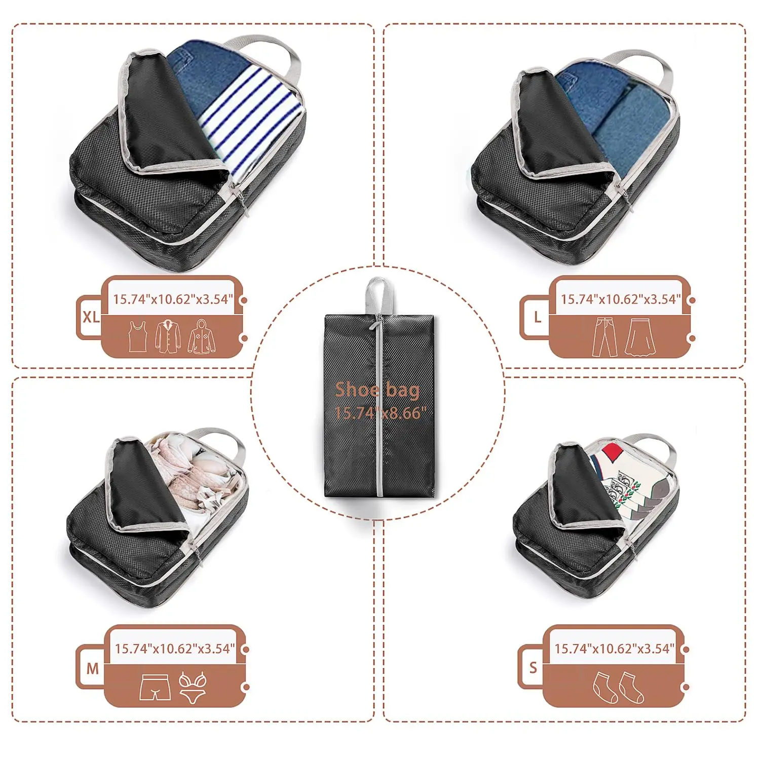 NTuGOudWLBHere you can buy 5PCS Compressed Packing Cubes Travel Storage Set Mesh Visual Luggage Organizer With Shoe Bag Portable Lightweight Suitcase Bag with free delivery to your post office.