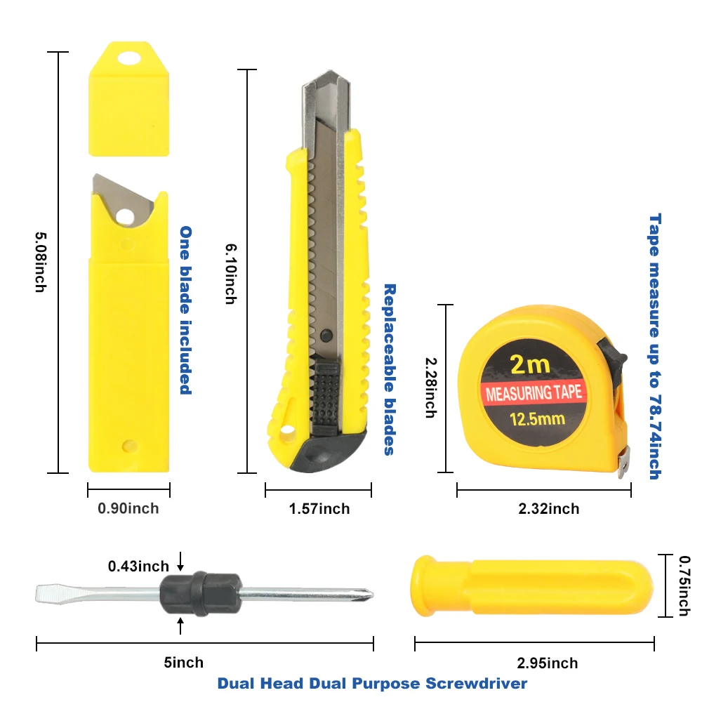 5Pcs Hand Tool Set: Stainless Steel Multi-Function Knife w/ Extra Blades Crosshead Flathead Screwdriver Iron Tape Measure ICK - Купить с бесплатной доставкой
