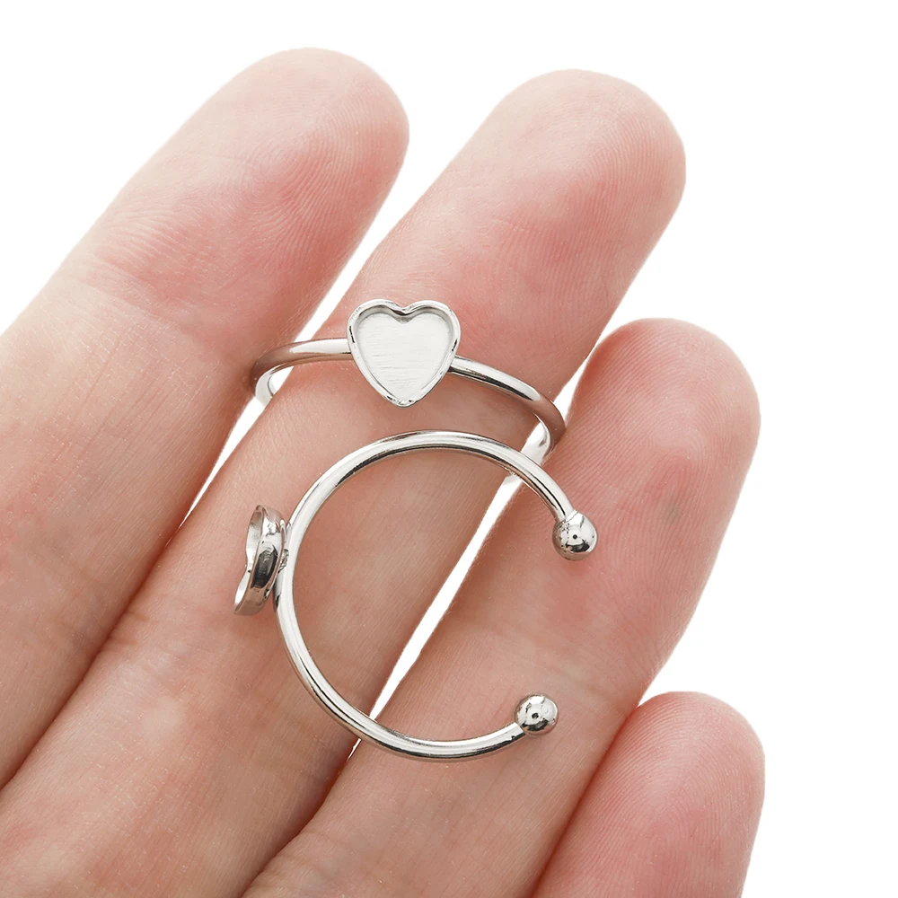 5Pcs Stainless Steel Adjustable Blank Ring With Bezel Base Tray Cabochon Heart Rings Setting For DIY Jewelry Making Supplies - Купить с бесплатной доставкой