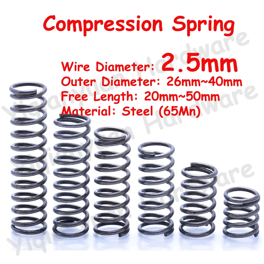 "5Pcs Wire Diameter φ2.5mm 65Mn OD26mm~40mm Cylidrical Coil Compression Spring Rotor Return Compressed Spring Release Pressure" * Buy Now With Free Shipping Just For $7