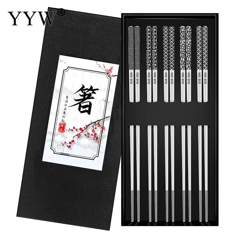 EspguFASXHere you can buy 5Pcs/Box Stainless Steel Non-Slip Chopstick Reusable Metal Incorruptible Laser Engraving Chinese Sushi Food Stick Home Tableware with free delivery to your post office.