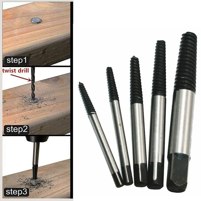 vOUgHaIhQHere you can buy 5Pcs/set Steel Broken Bolt Water Pipe Extractor Easy Out Damaged Screws Remover Extractor Drill Bit Guide Set Woodworking Tools with free delivery to your post office.