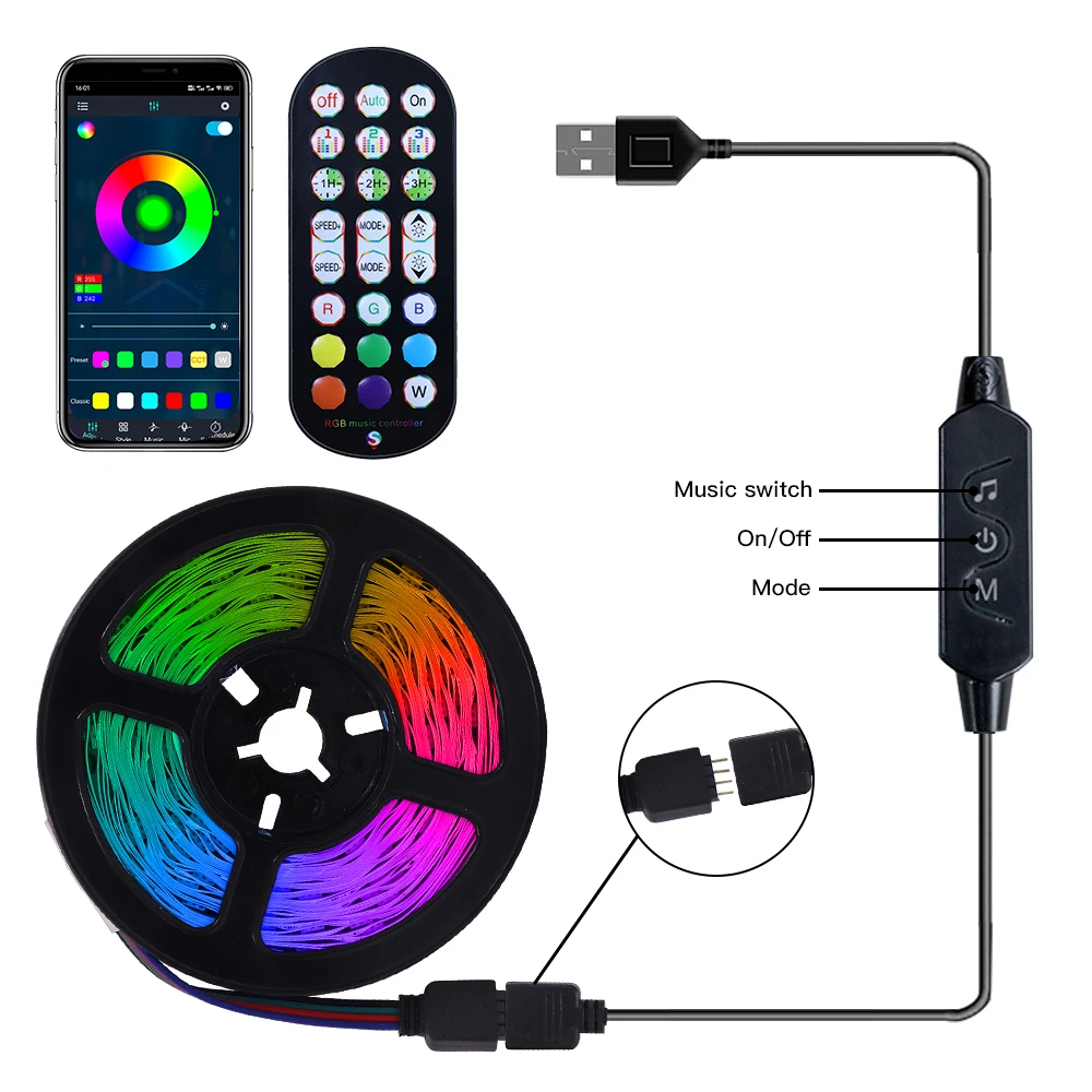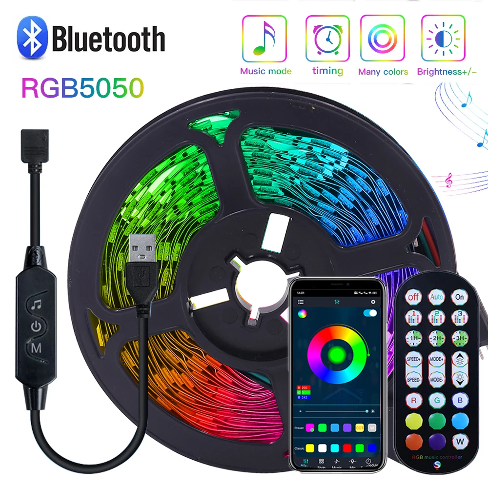 UpCZLiZLHere you can buy 5V USB LED Strip Lights RGB 5050 Bluetooth Smart Control Luces Flexible Lamp Diode Tape Computer PC Screen TV Backlight Decor with free delivery to your post office.